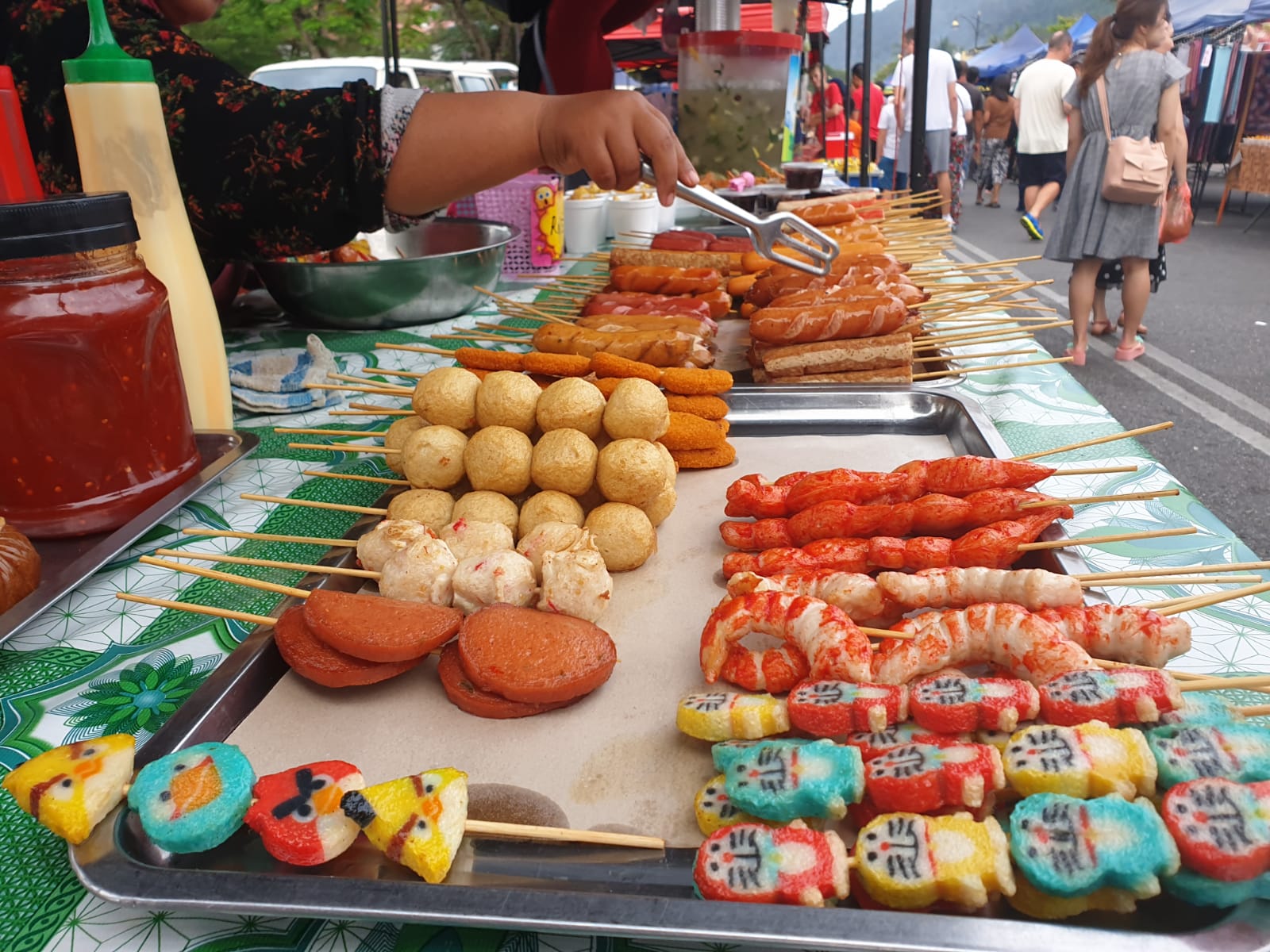 Ringgit w przeliczeniu do złotówki to prawie jeden do jednego. Łatwo odnieść się do lokalnych cen. Pośrodku wyspy kupujemy lunch dla 5 osób za odpowiednik 2 złotych. Zajadamy się smażonymi bananami, ostrymi zupami tom yum, nudlami pod każdą postacią, sajgonkami, wypiekami na słodko z pikantnym, rybnym wnętrzem, sałatką z mango, która pali język i wywołuje czkawkę u grubego i łzy w moim lewym oku (czemu tylko lewym?!), jemy kokosy pod każdą postacią. Jemy, jeeemy jemyyy. Nocne markety kuszą kolorami owoców, gryzą w oczy dymem z grilla, odurzają zapachem suszonej, smażonej w głębokim oleju ryby. Jemy pieczone kurczaki w orzechowym sosie z chilli, cienkie naleśniki z wołowiną i warzywami i inne pychotki. Malezja rozpieszcza nas kulinarnie. To kraj muzułmański. Na marketach nie ma alkoholu. Nie ma go też w ulicznych knajpach. Świeże soki z arbuza, ananasa lub mango gaszą pragnienie, chociaż trzeba je pić szybko bo Młodsza i Najmłodsza Mała wypijają je z jeszcze większym apetytem niż dorośli.