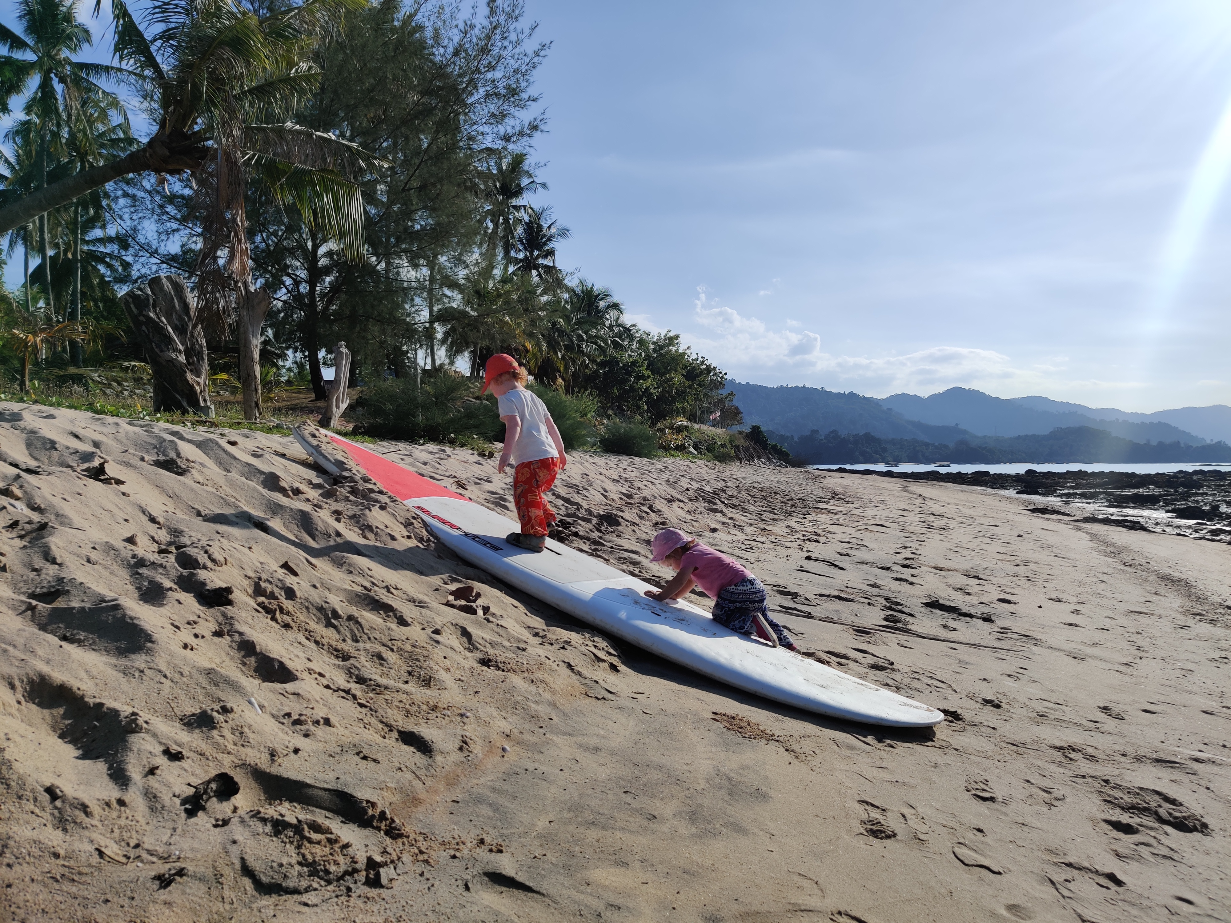 Ostatnie dni w Malezji mijają nam szybko. Poznajemy parę Austriaków. Podróżują z 2 letnią córeczką. Dziewczyny mają towarzystwo do zabawy i walki o wiaderka do piasku. Razem plażujemy, spędzamy czas w pralni i na placu zabaw. Na sylwestra idziemy na grilla, następnie przenosimy się witać nowy rok na plaży. Jest magicznie. Czarne niebo upstrzone jest gwiazdami. Jesteśmy w mało turystycznej części wyspy. Kiedy przychodzimy na plażę, jesteśmy sami. Pół kilometra dalej, jedyny hotel w tej okolicy ma puszczać fajerwerki. Przed północą, na plaży rozpalane jest ognisko. Każdy miał przynieść lampion. Swoje robimy z drutu i szarych kopert A4. Najmłodsze Małe udekorowały je kredkami. Lampiony nie latają. Symbolicznie palimy je w ognisku. Każdy wypowiada przy tym swoje życzenie na nowy rok. Nasz gospodarz mówi, że jego religia nie pozwala mu palić papieru. Kilka dni później wysyła nam zdjęcie z naszym nielatającym lampionem zatkniętym w ramkę.
