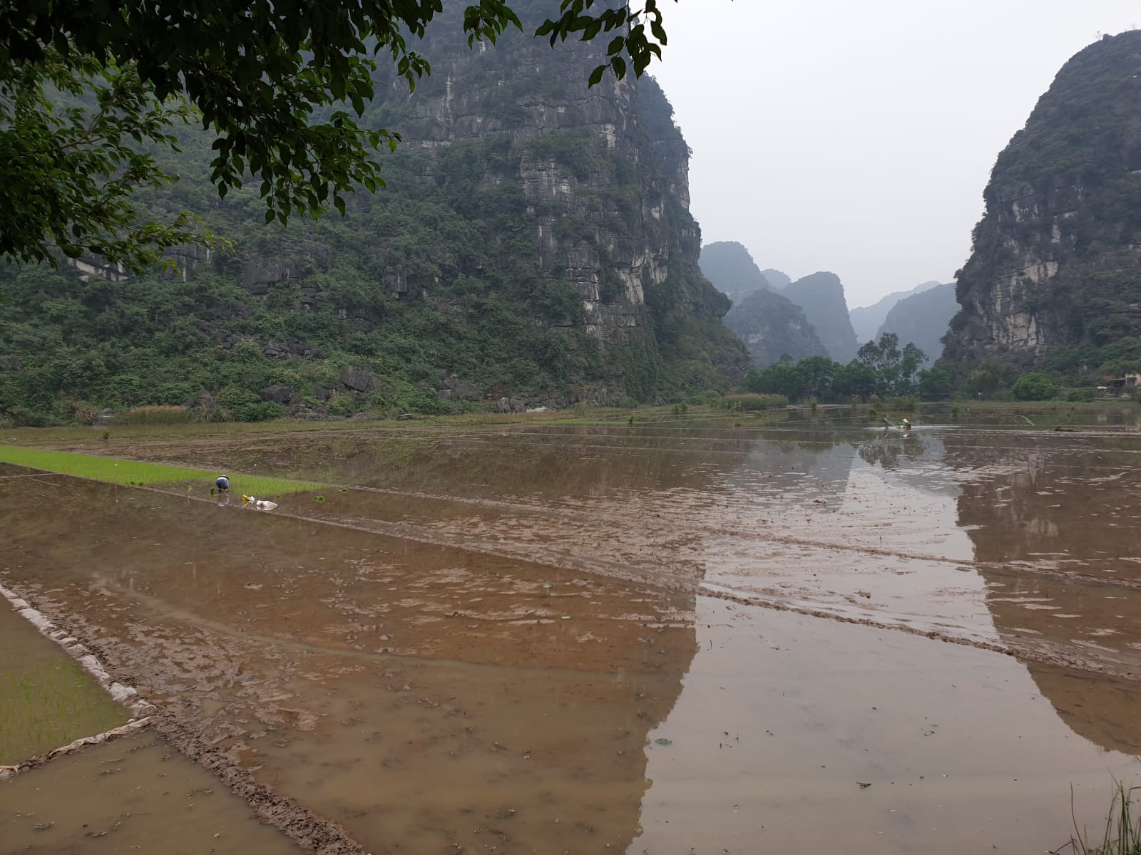 Rano wsiadamy na skuter. Mniejsza Mała siedzi między mną a grubym, Najmniejsza Mała siedzie w nosidle z przodu. Jedziemy bocznymi trasami do Trang An. Po drodze mijamy pola ryżowe, które obsadzane są ryżem. Obsadzanie pól powinno zakończyć się przed zbliżającym się nowym rokiem (Tet), które w Wietnamie jest najważniejszym świętem. To też czas, kiedy dosłownie wszyscy Wietnamczycy migrują w swoje rodzinne strony powodując tym samym paraliż branży turystycznej, zamieszanie w transporcie, zamknięcie hoteli, restauracji i kilkukrotny wzrost cen biletów lotniczych w okresie poprzedzającym i kończącym Tet.